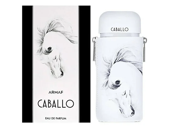 Κομψότητα. Αιθεριότης. Δύναμη. Αυτές οι ιδιότητες συμβολίζονται από το ανδρικό αρωματικό νερό Caballo Pour Homme από τη μάρκα Armaf. Φρέσκα ανοιχτά ακόρντα γκρέιπφρουτ, περγαμόντο και λεμόνι θα ξυπνήσουν τα ένστικτά σας. Οι πικάντικες χορδές τζίντζερ με μια μοσχομυριστή νότα από σπόρους ambrette μαλακώνουν από το γήινο άρωμα της βιολέτας. Αυτή η αρρενωπή εκλεπτυσμένη αρωματική σύνθεση κλείνει από ξυλώδεις νότες βέτιβερ, μόσχου, πατσουλί και ένα απαλό ρητινώδες άρωμα αμπροξάν.
