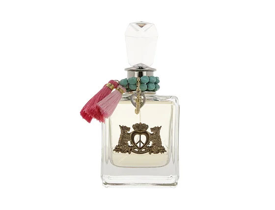 Το νέο άρωμα Juicy Couture Peace, Love and Juicy Couture είναι ένα άρωμα εμπνευσμένο από το στυλ Hippie και μας ταξιδεύει πίσω στην ελεύθερη δεκαετία του '60. Το τεράστιο μπουκάλι αρώματος είναι κατασκευασμένο από βαρύ γυαλί, διακοσμημένο με όμορφα διακοσμητικά όπως τιρκουάζ μαργαριτάρια και ροζ φούντες. Το άρωμα Peace, Love and Juicy Couture κυκλοφόρησε το 2010.