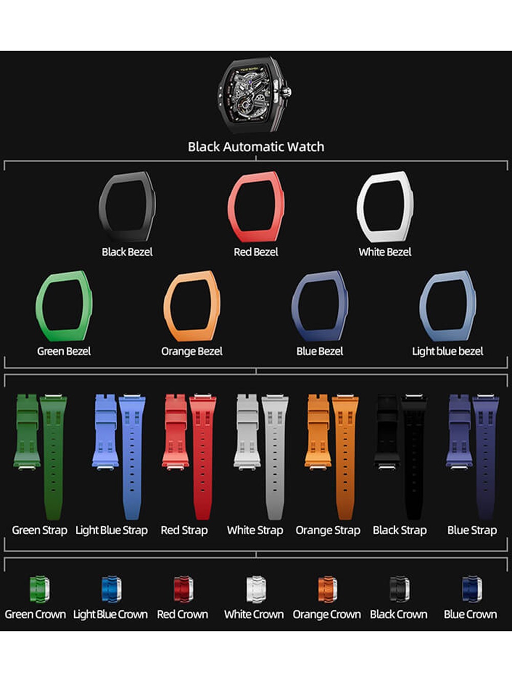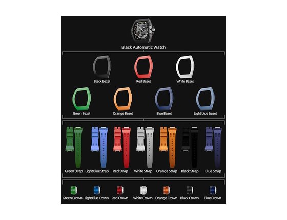 - Strap color: Blue, Green, Orange, Red, Black, white