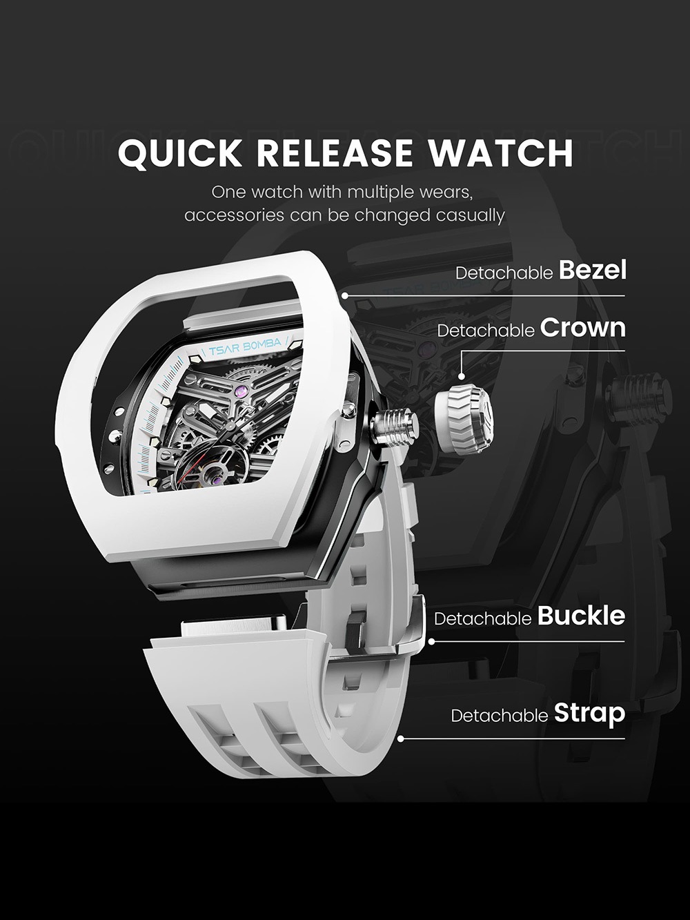 Tsar Bomba TB8218(1+7)FKM-03 Mens Watch Atomic Interchangeable Watch Combo Automatic 46mm 5ATM
