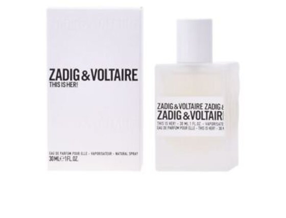 Eau de Parfum Zadig & Voltaire This Is Her! προκαλεί ένα αίσθημα ατελείωτης ελευθερίας και ενθουσιασμού. Η αρωματική του σύνθεση ισορροπεί στα όρια μεταξύ καθαρής λιχουδιάς και μιας πιο σκοτεινής, μυστηριώδους πλευράς.